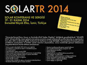 Türkiye güneş enerjisi sektörünün öncü kuruluşları işbirliğinde düzenlenecek "SOLARTR 2014"te, güneş enerjisi sektörünün gelişimi için öneriler ve teknolojik yenilikler masaya yatırılacak.
